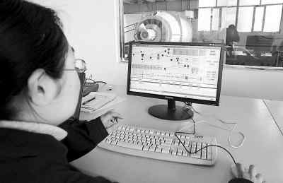 砂墩子煤礦主皮帶集控室工作人員在操作計算機。