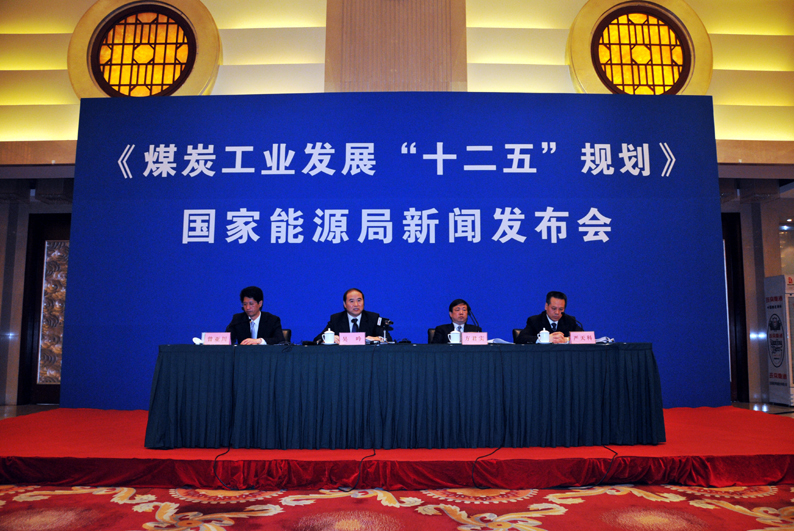 2012年3月22日(周四)上午10:00,國家能源局在職工之家召開新聞發(fā)布會,發(fā)布《煤炭工業(yè)發(fā)展“十二五”規(guī)劃》,并回答記者提問。圖為發(fā)布會主席臺。肖磊濤 攝 |