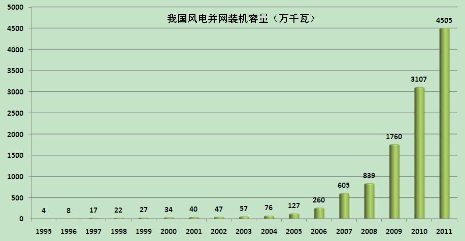 2012年9月底,我國風(fēng)電并網(wǎng)裝機(jī)容量達(dá)到5600萬千瓦,居世界第一。