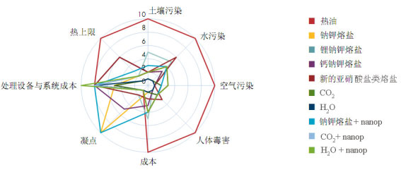 ????三、目標(biāo)2:增強(qiáng)可調(diào)度性 ????可調(diào)度性是增強(qiáng)太陽能熱發(fā)電技術(shù)競爭力的重要特性,能夠靈活響應(yīng)電網(wǎng)需求是關(guān)鍵。盡管許多電站已建設(shè)了蓄熱系統(tǒng),但仍需要開展更多的工作。 ????(一)綜合系統(tǒng) ????通過水預(yù)熱方法或鍋爐蒸汽/水循環(huán)能夠?qū)崿F(xiàn)將太陽熱能集成到大型蒸汽廠。需要設(shè)計(jì)合適的鍋爐以應(yīng)對溫度差異。如果鍋爐集成已完成,還需要改進(jìn)其設(shè)計(jì)與控制系統(tǒng)。 ????將太陽熱能與燃?xì)廨啓C(jī)或聯(lián)合循環(huán)電站集成也是選擇之一。與燃?xì)廨啓C(jī)相結(jié)合時(shí),在高溫太陽能集熱器中可將空氣溫度加熱到高溫,從而產(chǎn)生高轉(zhuǎn)化效率。提高處理過渡相的能力需要改進(jìn)設(shè)計(jì)控制系統(tǒng)。 ????將太陽熱能與生物質(zhì)集成更適用于小規(guī)模設(shè)施,可以作為全可再生能源電站。 ????(二)蓄熱 ????不同傳熱流體,采用不同的設(shè)計(jì): ????熱油:用具有良好溫度分層的單個蓄熱罐替代雙罐配置可極大簡化蓄熱。還可以通過換熱器和蓄熱材料的固態(tài)分離來優(yōu)化單罐設(shè)計(jì)。 ????熔鹽:太陽能場和蓄熱循環(huán)之間不需要交換器。需要研發(fā)具有低凝點(diǎn)和避免腐蝕問題的新熔鹽混合物。 ????蒸汽:在發(fā)電模塊之前不需要交換器。需要調(diào)研用于飽和蒸汽的固態(tài)/液態(tài)相變材料。 ????氣體:超高溫應(yīng)用可行。挑戰(zhàn)是如何設(shè)計(jì)高效傳熱系統(tǒng)和蓄熱材料選擇。 ????一般而言,需要改進(jìn)熱量積蓄與釋放策略以最大化蓄熱能力。還需要調(diào)研熱化學(xué)儲能系統(tǒng)概念。 ????(三)改進(jìn)預(yù)測 ????良好的預(yù)測能力對于可靠估計(jì)給定地點(diǎn)電站的成本非常重要??梢栽O(shè)想許多解決方案,如詳細(xì)預(yù)報(bào)超短期氣象情況,開發(fā)電力預(yù)測系統(tǒng)軟件監(jiān)管電力生產(chǎn),改進(jìn)地面太陽直射輻射(DNI)測量方法,利用氣象衛(wèi)星結(jié)果,改進(jìn)用于DNI預(yù)測的數(shù)值天氣預(yù)報(bào)模型,分析太陽能與風(fēng)能資源之間的年際變化情況和時(shí)間與空間關(guān)聯(lián)。 ????四、目標(biāo)3:提高環(huán)境效應(yīng) ????傳熱流體因其對環(huán)境的潛在影響而成為實(shí)現(xiàn)本目標(biāo)的關(guān)注點(diǎn),合成油的污染是最令人擔(dān)憂的影響之一。不同流體的環(huán)境和經(jīng)濟(jì)特性研究如圖1所示。