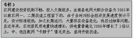 ????(五)農(nóng)電管理體制尚未理順,發(fā)展中的困局需要破解。河南省有107家縣級(jí)供電企業(yè)為躉售供電企業(yè),其中83家由河南省電力公司代管,縣級(jí)供電企業(yè)沒(méi)有和省電力公司形成資產(chǎn)紐帶關(guān)系。農(nóng)網(wǎng)發(fā)展主要靠國(guó)家階段性改造資金,省電力公司投資規(guī)模較小,地方政府投資意愿不強(qiáng),縣級(jí)供電企業(yè)受經(jīng)營(yíng)狀況影響自身投資能力差,種種因素制約農(nóng)網(wǎng)投資能力和可持續(xù)發(fā)展。