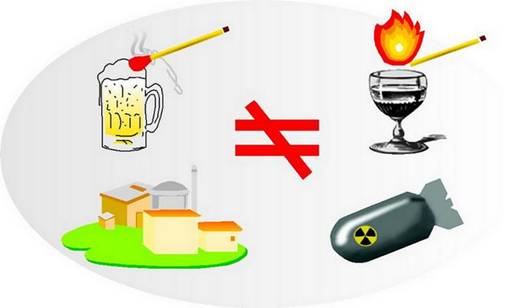 ????雖然核彈和核反應(yīng)堆都以鈾為原料,但兩者對純度要求完全不同:核彈要求鈾純度在90%以上,而核電站核燃料鈾純度只有3%左右,如此低的濃度根本不能發(fā)生爆炸,正如烈度白酒可以點(diǎn)燃,啤酒卻不能點(diǎn)燃的道理一樣。核電站50多年的發(fā)展歷史上,從未發(fā)生過核爆炸:切爾諾貝利核事故是蒸汽爆炸,日本福島第一核電站是氫氣爆炸,都不是核爆炸。