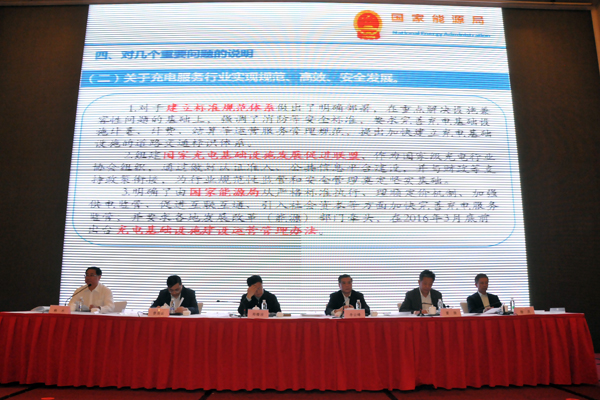 ??? 為落實9月23日、9月29日的第106次和107次國務(wù)院常務(wù)會議關(guān)于加快電動汽車充電基礎(chǔ)設(shè)施建設(shè)的有關(guān)部署,成立充電基礎(chǔ)設(shè)施促進(jìn)聯(lián)盟,交流建設(shè)經(jīng)驗,推動全國充電基礎(chǔ)設(shè)施加快建設(shè),國家能源局于10月12日在常州召開全國新能源汽車充電基礎(chǔ)設(shè)施建設(shè)現(xiàn)場會。圖為大會主席臺。周柏豫攝 |