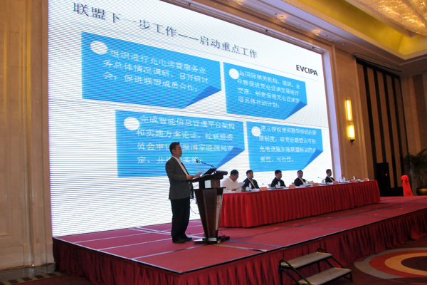 董揚同志介紹電動汽車充電基礎(chǔ)設(shè)施促進(jìn)聯(lián)盟籌備情況