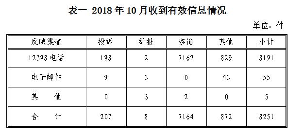 2018年10月12398能源監(jiān)管熱線投訴舉報(bào)處理情況通報(bào)