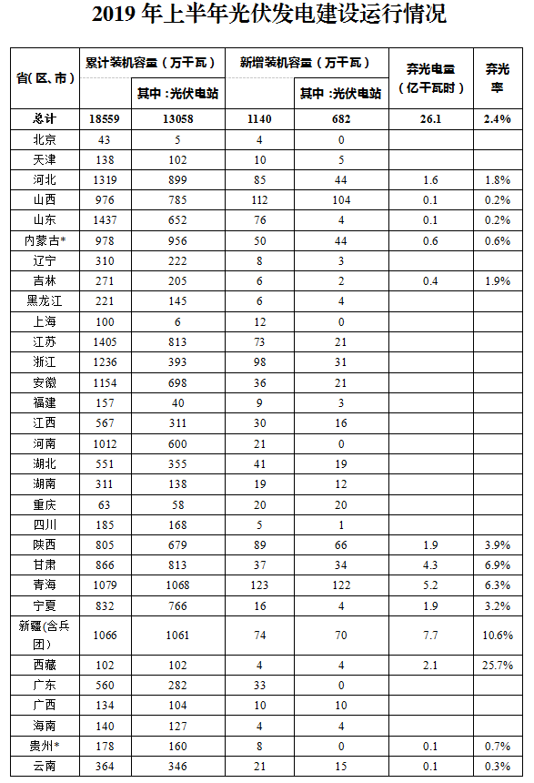 2019年上半年光伏發(fā)電建設(shè)運行情況