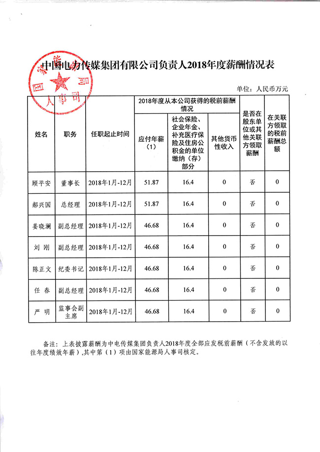 關(guān)于披露中電傳媒集團(tuán)負(fù)責(zé)人2018年度薪酬情況的通知