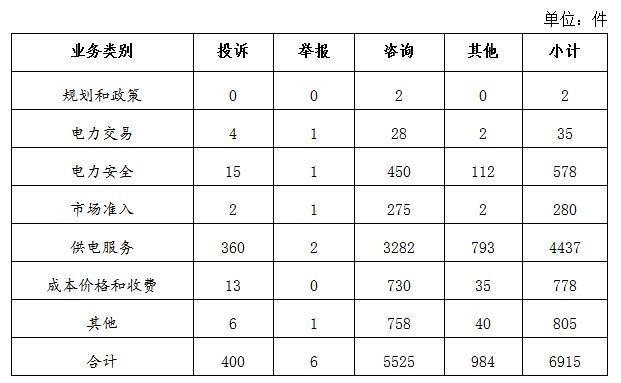 注:接收投訴舉報(bào)數(shù)量為當(dāng)月數(shù)據(jù);辦結(jié)屬實(shí)投訴舉報(bào)數(shù)量含部分往月結(jié)轉(zhuǎn)數(shù)據(jù)。 四、主要問題 投訴舉報(bào)反映的問題主要集中在電力行業(yè),其次是新能源和可再生能源行業(yè)。 電力行業(yè)在供電服務(wù)、成本價(jià)格及收費(fèi)等方面反映的主要問題:一是部分地區(qū)用電高峰時(shí)段低電壓現(xiàn)象較為突出。特別是農(nóng)網(wǎng)改造相對滯后的地區(qū),供電設(shè)施老舊、供電半徑長、供電線徑小等,導(dǎo)致用戶終端電壓低,影響群眾正常生活。二是個(gè)別地區(qū)停電后搶修和恢復(fù)供電不及時(shí)。因供電企業(yè)搶修力量不足或者配置不合理,不能及時(shí)搶修用電高峰時(shí)期多發(fā)的停電故障,導(dǎo)致停電時(shí)間較長。三是部分供電企業(yè)供電服務(wù)不規(guī)范。個(gè)別工作人員業(yè)務(wù)水平不高,服務(wù)意識(shí)不強(qiáng),存在因工作失誤或操作不規(guī)范導(dǎo)致的接錯(cuò)電表、錯(cuò)收電費(fèi)等。 新能源和可再生能源行業(yè)主要反映了部分地區(qū)分布式光伏發(fā)電項(xiàng)目上網(wǎng)電費(fèi)結(jié)算、補(bǔ)貼轉(zhuǎn)付不及時(shí)等問題。 五、處理結(jié)果 2020年10月共收到投訴舉報(bào)信息418件,根據(jù)國家有關(guān)法律法規(guī)規(guī)定,國家能源局派出機(jī)構(gòu)對屬于監(jiān)管職責(zé)范圍的390件進(jìn)行了受理,占投訴舉報(bào)量的93.30%;其他不屬于能源監(jiān)管職責(zé)范圍的已按照有關(guān)規(guī)定進(jìn)行了及時(shí)轉(zhuǎn)辦。 針對群眾反映的投訴舉報(bào)事項(xiàng),國家能源局派出機(jī)構(gòu)嚴(yán)格依據(jù)國家有關(guān)法律法規(guī)及文件規(guī)定進(jìn)行了處理:一是通過解釋說明,澄清事實(shí),使當(dāng)事人消除了誤解;二是通過協(xié)調(diào)督促,加快電能質(zhì)量、供電服務(wù)等問題的解決,及時(shí)消除了安全隱患,保障了群眾正常生產(chǎn)生活;三是通過行政處罰、監(jiān)管約談、責(zé)令整改等方式,糾正了相關(guān)企業(yè)的違法違規(guī)行為,維護(hù)了當(dāng)事人的合法權(quán)益。 10月20日,國家能源局油氣管網(wǎng)設(shè)施公平開放信息公開平臺(tái)正式上線(網(wǎng)址:http://gk.nyjg2020.com),以信息化、網(wǎng)絡(luò)化、智能化手段,為業(yè)界提供了了解管網(wǎng)信息的公開窗口。油氣管網(wǎng)設(shè)施的公平開放是我國油氣市場監(jiān)管新的起點(diǎn),國家能源局將繼續(xù)強(qiáng)化油氣市場監(jiān)管,繼續(xù)推進(jìn)油氣管網(wǎng)設(shè)施公平開放。對不按要求公平、無歧視地開放油氣管網(wǎng)設(shè)施的行為,社會(huì)各界可以通過12398熱線向國家能源局反映。 |