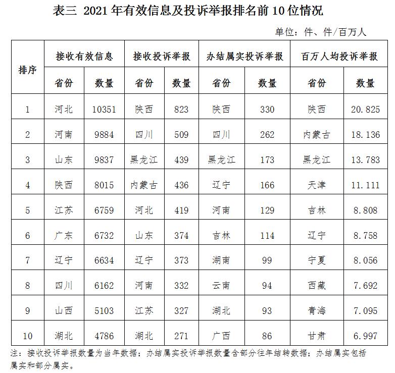 石油天然氣行業(yè)排在第二位,有效信息數(shù)量為13323件,占全部有效信息的10.19%。群眾關(guān)注的內(nèi)容主要集中在居民燃?xì)庠O(shè)備故障、居民燃?xì)鈭?bào)裝等方面。 新能源和可再生能源行業(yè)排在第三位,有效信息數(shù)量為7191件,占全部有效信息的5.50%。群眾關(guān)注的內(nèi)容主要集中在居民分布式光伏發(fā)電項(xiàng)目并網(wǎng)、電費(fèi)結(jié)算等方面。 其他有效信息合計(jì)12077件,占全部有效信息的9.24%。其中涉及煤炭行業(yè)的主要集中在煤炭行業(yè)政策、煤礦項(xiàng)目信息等方面。 三、分布情況 各省(自治區(qū)、直轄市)按照接收的有效信息數(shù)量排序,河北、河南、山東、陜西、江蘇、廣東、遼寧、四川、山西、湖北排在全國前10位;按照接收的投訴舉報(bào)數(shù)量排序,陜西、四川、黑龍江、內(nèi)蒙古、河北、山東、遼寧、河南、江蘇、湖北排在全國前10位;按照辦結(jié)屬實(shí)的投訴舉報(bào)數(shù)量排序,陜西、四川、黑龍江、遼寧、河南、吉林、湖南、云南、湖北、廣西排在全國前10位;按照百萬人均投訴舉報(bào)數(shù)量排序,陜西、內(nèi)蒙古、黑龍江、天津、吉林、遼寧、寧夏、西藏、青海、甘肅排在全國前10位。(2021年有效信息及投訴舉報(bào)排名前10位情況見表三) 四、主要問題 2021年投訴舉報(bào)反映的問題主要集中在電力行業(yè),其次是新能源和可再生能源行業(yè)。 電力行業(yè)投訴舉報(bào)數(shù)量為7258件,占全部投訴舉報(bào)數(shù)量的96.70%。反映的主要問題有:一是部分地區(qū)供電服務(wù)存在不足。有的地區(qū)供電設(shè)施老舊,網(wǎng)架比較薄弱,存在供電半徑長、供電線徑小等問題,頻繁停電、低電壓問題較為突出,無法滿足群眾用電增長需求;部分地區(qū)供電企業(yè)在暴雨、臺(tái)風(fēng)、暴雪等惡劣天氣下故障停電情況多發(fā),應(yīng)急搶修能力不足,停電后修復(fù)周期較長;部分地區(qū)供電企業(yè)制定的停電計(jì)劃不合理,停限電通知不到位,影響了人民群眾正常用電;個(gè)別供電企業(yè)工作人員服務(wù)行為不規(guī)范、主動(dòng)服務(wù)意識(shí)不強(qiáng),存在處理用戶故障報(bào)修不及時(shí)、業(yè)擴(kuò)報(bào)裝超時(shí)限、電費(fèi)收取不規(guī)范、電表計(jì)量錯(cuò)誤等問題。二是部分地區(qū)供電企業(yè)排查治理安全隱患不到位。部分供電企業(yè)電力設(shè)施日常巡檢、維護(hù)保養(yǎng)不到位,防外力破壞宣傳不到位,存在電力線路老舊、架空線路垂落或跨越居民房屋、電力設(shè)施保護(hù)層破損、電力設(shè)施安裝位置不合理、電桿傾斜、未安裝安全標(biāo)識(shí)和警示牌等安全隱患。三是部分電力工程企業(yè)辦理承裝(修、試)許可證時(shí)提供虛假材料,冒用其它公司員工電工證、職稱證書。四是個(gè)別供電企業(yè)存在“三指定”、非法供電等違法違規(guī)行為,擾亂電力市場秩序,損害了其他市場主體的合法權(quán)益等。 新能源和可再生能源行業(yè)投訴舉報(bào)數(shù)量為246件,占全部投訴舉報(bào)數(shù)量的3.28%,反映的主要問題是部分供電企業(yè)進(jìn)行分布式光伏電費(fèi)結(jié)算、墊付光伏發(fā)電項(xiàng)目補(bǔ)貼不及時(shí)。其他行業(yè)投訴舉報(bào)數(shù)量為2件,占全部投訴舉報(bào)數(shù)量的0.02%。 五、處理結(jié)果 在2021年收到的7506件投訴舉報(bào)信息中,根據(jù)國家有關(guān)法律法規(guī)規(guī)定,國家能源局派出機(jī)構(gòu)對屬于監(jiān)管職責(zé)范圍的7347件進(jìn)行了受理,占投訴舉報(bào)量的97.88%;其他不屬于能源監(jiān)管職責(zé)范圍的已按照有關(guān)規(guī)定進(jìn)行了及時(shí)轉(zhuǎn)辦。同時(shí),每月選取典型投訴舉報(bào)事項(xiàng)具體處理情況在通報(bào)中進(jìn)行了披露。(2021年12月12398熱線典型投訴舉報(bào)事項(xiàng)具體處理情況見附件) 針對群眾反映的投訴舉報(bào)事項(xiàng),國家能源局派出機(jī)構(gòu)嚴(yán)格依據(jù)國家有關(guān)法律法規(guī)及文件規(guī)定進(jìn)行了處理:一是通過行政處罰、監(jiān)管約談、責(zé)令整改等方式,糾正了有關(guān)企業(yè)的違法違規(guī)行為,維護(hù)了當(dāng)事人的合法權(quán)益;二是通過協(xié)調(diào)督促,加快電能質(zhì)量、供電服務(wù)等問題的解決,消除了安全隱患,保障了群眾正常生產(chǎn)生活;三是通過解釋說明,澄清事實(shí),使當(dāng)事人消除了誤解。 2022年,國家能源局將堅(jiān)持以人民為中心的發(fā)展理念,及時(shí)處理好人民群眾反映的各類用能訴求,尤其是高度關(guān)注、全力保障能源供應(yīng)不足地區(qū)、疫情高中風(fēng)險(xiǎn)地區(qū)和發(fā)生自然災(zāi)害地區(qū)人民群眾的用能訴求;強(qiáng)化能源監(jiān)管“互聯(lián)網(wǎng)+”建設(shè),加大對12398熱線微信公眾號和APP的宣傳普及力度,積極引導(dǎo)社會(huì)公眾廣泛參與能源監(jiān)管工作;進(jìn)一步簡化工作流程,提高工作效率,努力使人民群眾用能訴求得到快捷、有效的解決,切實(shí)發(fā)揮12398熱線“知民情、察民意、紓民困、解民憂”的民生通道作用,傳遞好黨在能源領(lǐng)域的“人民情懷”。 |