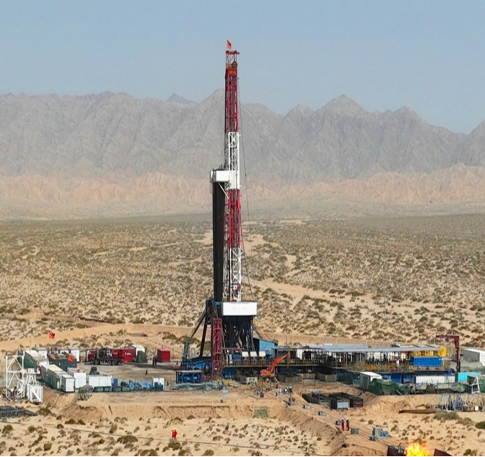 川北侏羅系巴中1HF井 七、12000米鉆機助力萬米科探“雙子星”鳴笛開鉆 塔里木盆地和四川盆地是目前我國油氣資源最豐富的兩大盆地,也是未來油氣發(fā)現(xiàn)的重要潛力區(qū)域。經反復地質論證,伴隨我國自主研發(fā)的12000米特深井自動化鉆機研制成功,兩口萬米科探井先后在塔里木、四川盆地鳴笛開鉆,開啟我國深層油氣勘探開發(fā)地下萬米“長征”,助推我國油氣資源探索發(fā)現(xiàn)邁入“中國深度”。 2023年5月,我國首口萬米科探井——深地塔科1井開鉆,設計井深11100米,面臨特深、超高溫、超高壓、超重載荷、高應力等多因素地質挑戰(zhàn),預計鉆井周期457天,該井立足科學探索與預探發(fā)現(xiàn)雙重定位,尋找萬米超深層戰(zhàn)略接替領域。2023年7月,四川盆地第一口萬米深井——深地川科1井開鉆,設計井深10520米,7項工程難度指標位居世界第一,該井旨在揭示萬米深部地層巖石和流體物理化學特征,驗證工程技術裝備適應性,探索川西北萬米超深層燈影組含氣性。