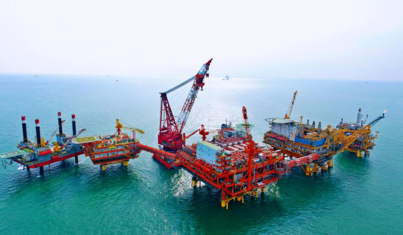 富滿油田快速建產現(xiàn)場 博孜-大北超深層大氣田加快產建節(jié)奏,先后攻克清潔完井、井完整性、高壓長距離混輸?shù)汝P鍵工程技術瓶頸,天然氣百億立方米上產踏點運行,克深氣田“控-調-排”協(xié)同治水保穩(wěn)產,庫車地區(qū)超深層天然氣產量達180億立方米。 三、海洋油氣勘探開發(fā)再獲新突破 我國海上油氣勘探開發(fā)持續(xù)發(fā)力,通過創(chuàng)新成盆成凹機制、油氣成藏模式認識,在渤海海域、南海深水領域再獲億噸級油氣勘探新發(fā)現(xiàn),開辟深水、深層、隱蔽油氣藏、盆緣凹陷等勘探新領域,支撐海洋強國建設能力進一步增強。 渤海南部發(fā)現(xiàn)全球最大太古界變質巖渤中26-6油田,渤海灣負向潛山鉆獲最高日產油氣325噸、33萬立方米,累計探明和控制地質儲量超2億噸油當量。渤海淺層秦皇島27-3油田明下段測試喜獲高產,探明石油地質儲量超過1億噸。南海東部深水獲億噸級油氣發(fā)現(xiàn),珠江口盆地開平南油田鉆獲日產超千噸高產油流井,累計探明地質儲量超1億噸油當量。
